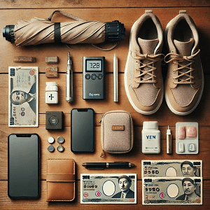 折り畳み傘:突然の雨対策。小さく軽量なものを選ぶと携帯に便利であり、風に強いタイプを選ぶとより安心です。